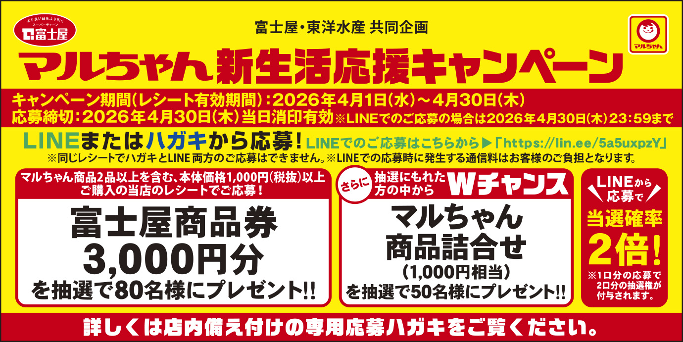 - 2026年02月01日【2/28(土)まで】富士屋×日本ハム共同企画「食卓を応援!! 冷凍食品キャンペーン」のご案内