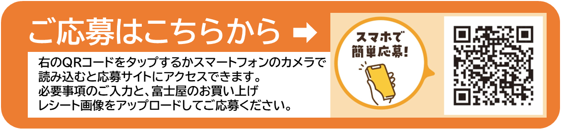 ①キャンペーン期間中にお買い上げ頂いた、カゴメ飲料1品以上を含む、富士屋のレシートを1口として、下記のQRコードからご応募ください。