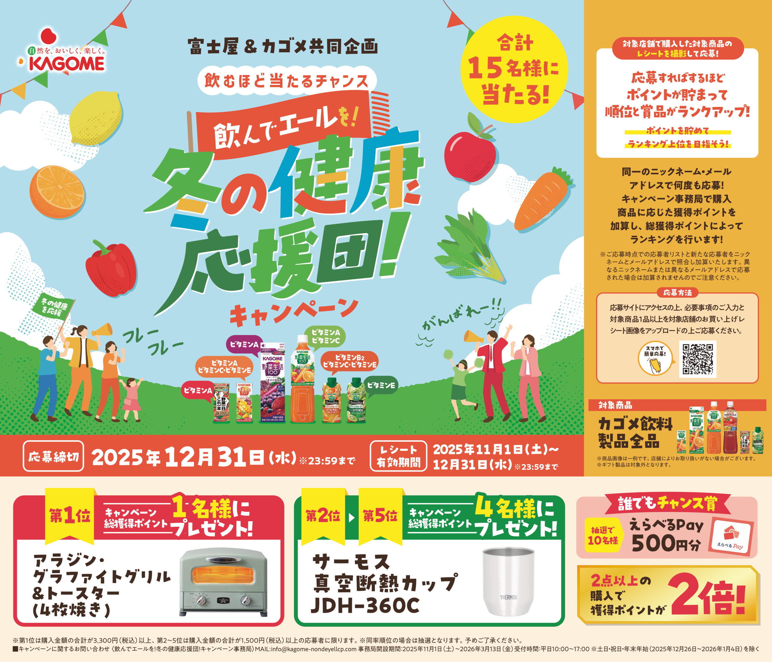 2025年11月01日【12/31(水)まで】富士屋&カゴメ共同企画「飲んでエールを!冬の健康応援団!キャンペーン」のご案内