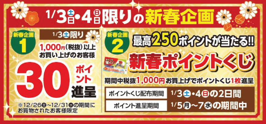 2025年12月31日【1/3(土)・1/4(日)】最高250ポイントがあたる!新春特別企画「ポイントくじ」のご案内